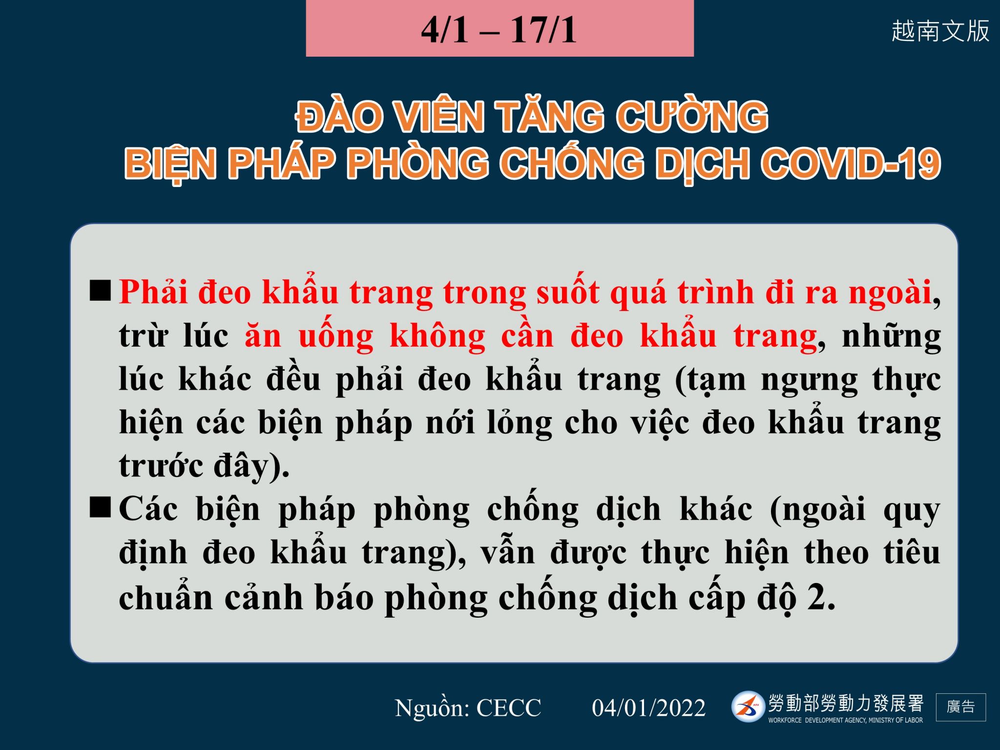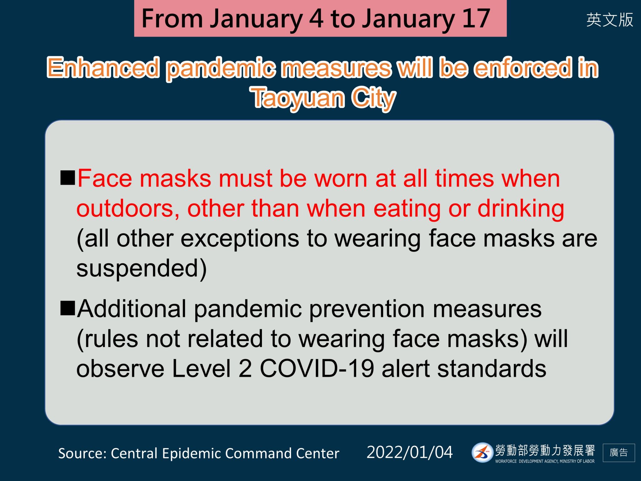 12月28日至1月10日維持疫情二級警戒(多國翻譯)