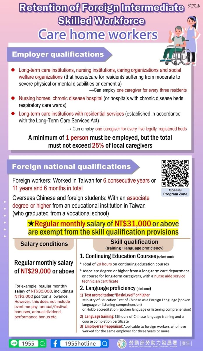 延伸閱讀 勞動部「0+7」移工入境自主防疫措施懶人包 立委指中階人力成效不彰凍預算,勞動部持續宣導 外籍看護漲價了?家事移工薪資調漲、雇主申請補貼懶人包 【人力仲介推薦】惜福人力集團品牌12優勢,A級人力仲介,安心首選