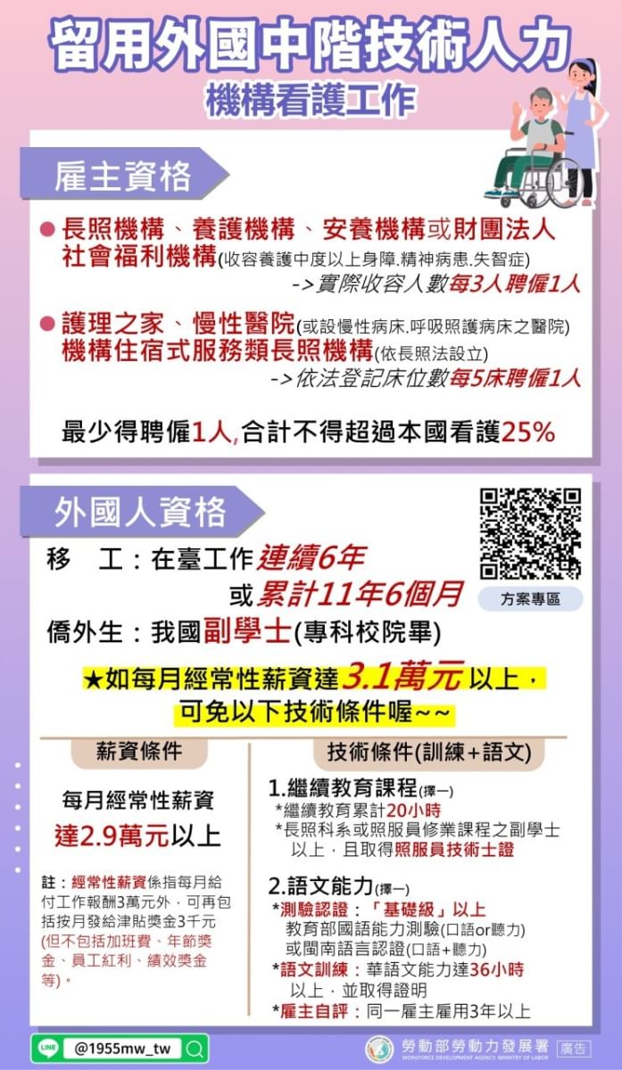 ※申請詳情請洽:勞動部「中階人力資訊專頁網站」,服務專線1955或02-8995-6000。 【分享文章來源 2022/11/7 1955@LINE移點通】