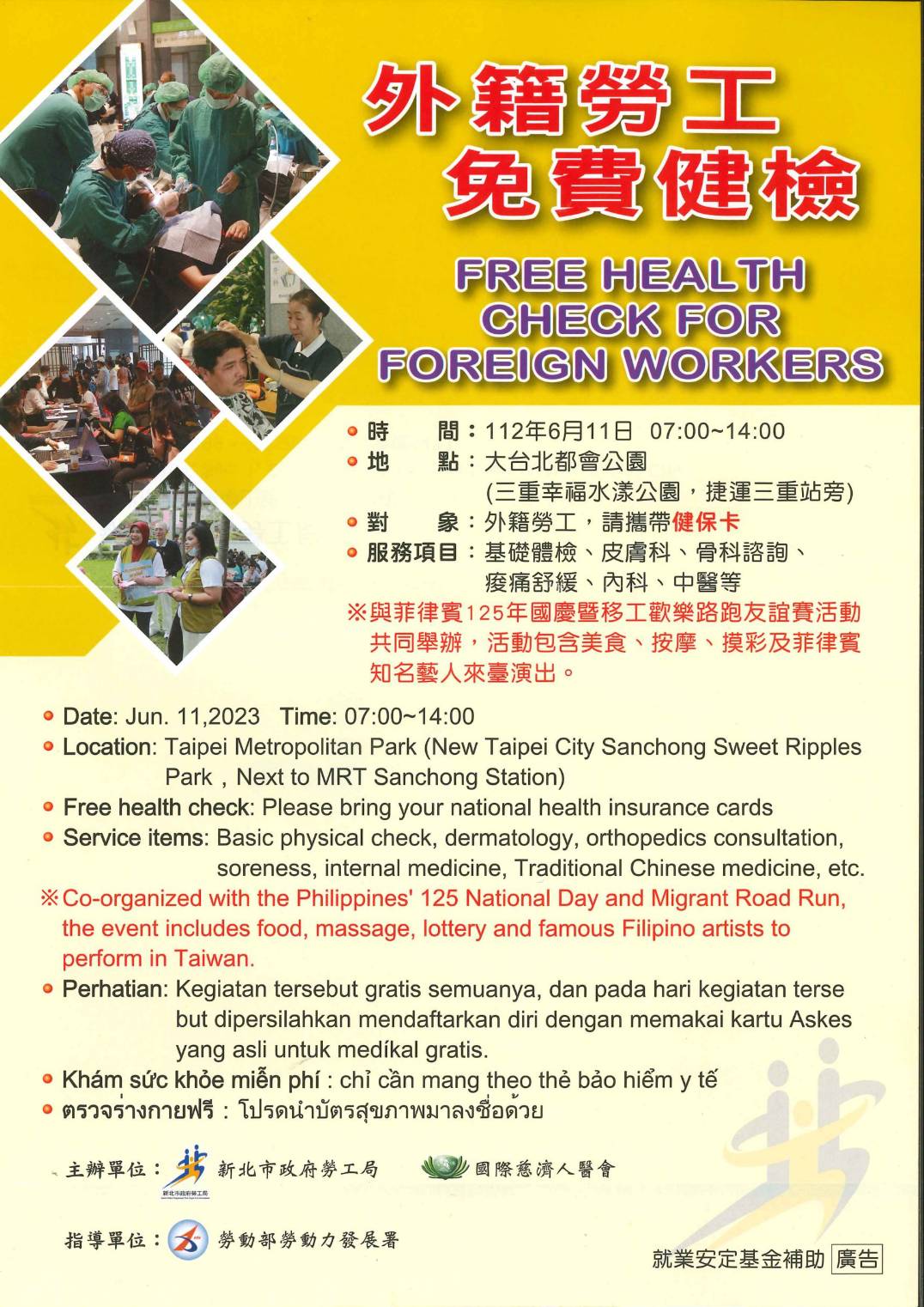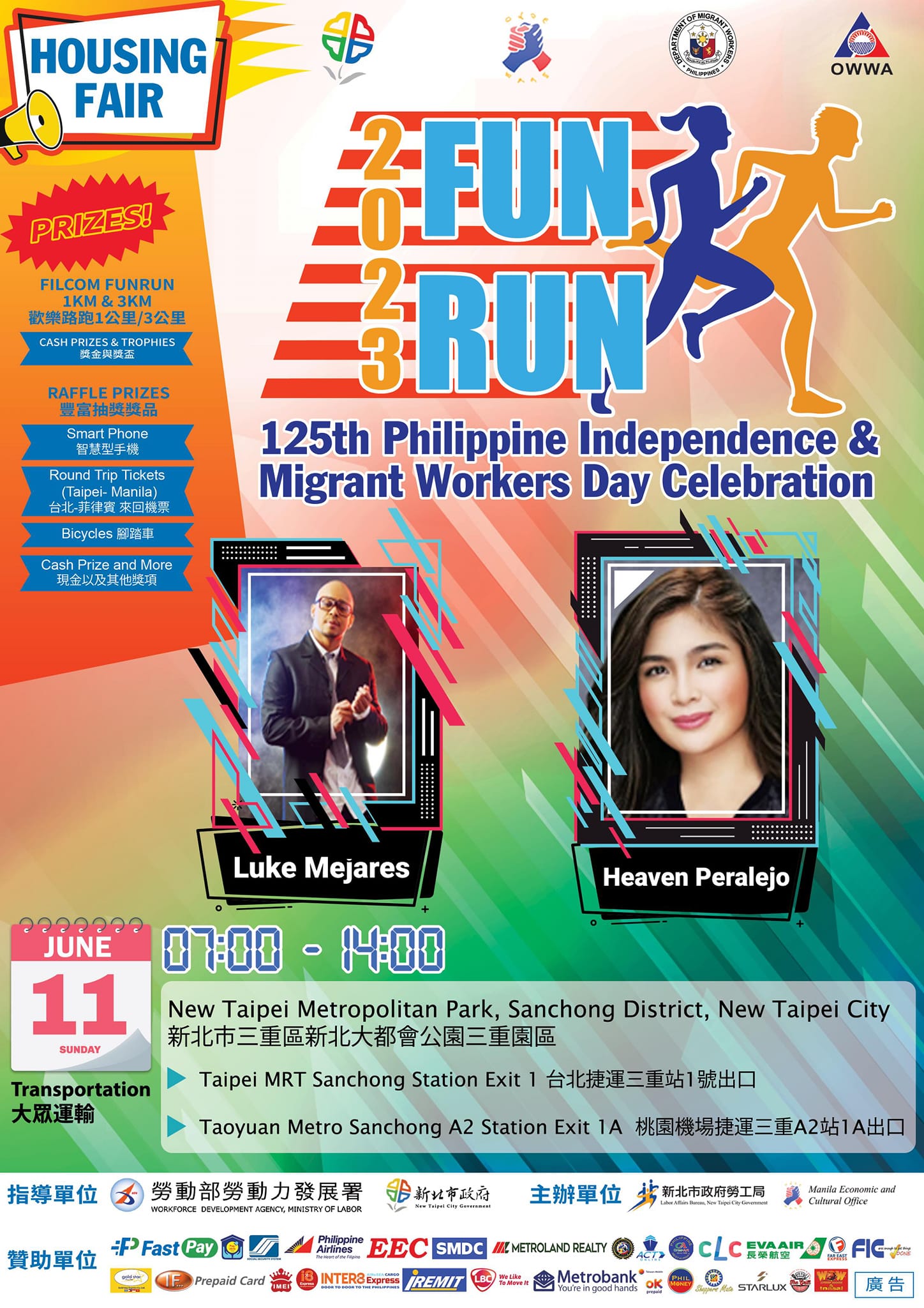 【新北市訊】為慶祝菲律賓獨立紀念日,新北市政府勞工局與馬尼拉經濟文化辦事處,將於6月11日(星期日)上午7時至下午2時,於三重區新北大都會公園-幸福水漾園區,共同舉辦「菲律賓125年國慶暨移工歡樂路跑友誼賽」,力邀菲律賓移工、新住民及僑生熱情參與!