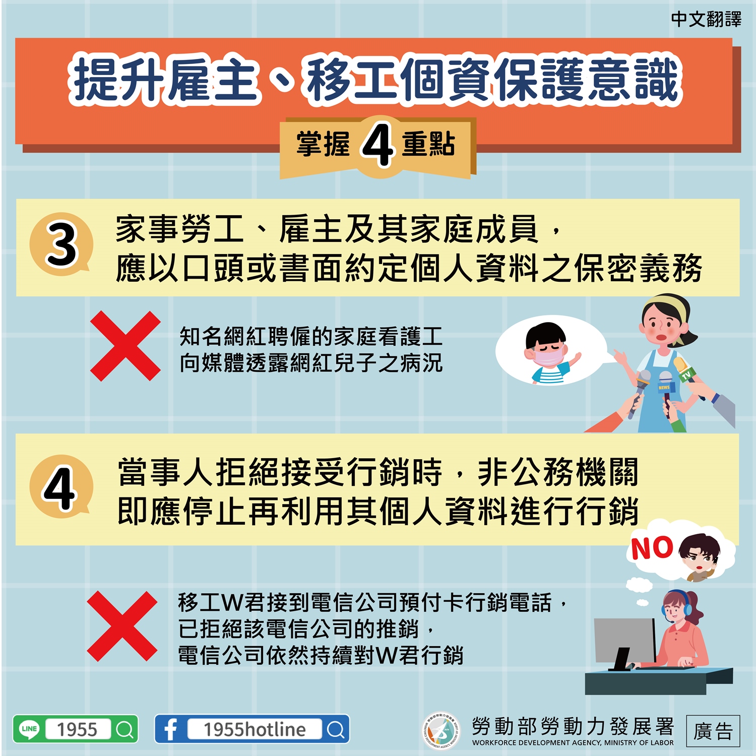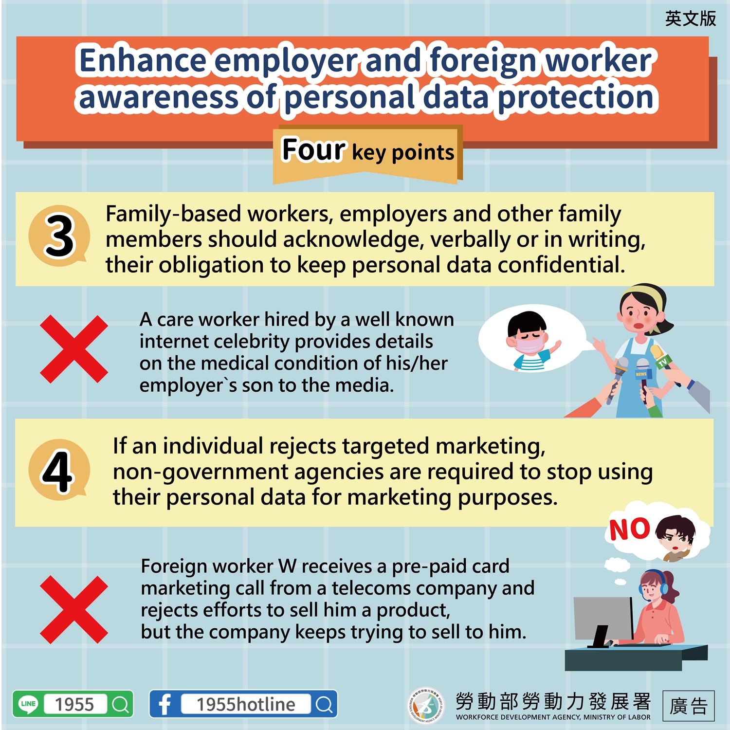 3.家事勞工、雇主及其家庭成員,應以口頭或書面約定個人資料之保密義務