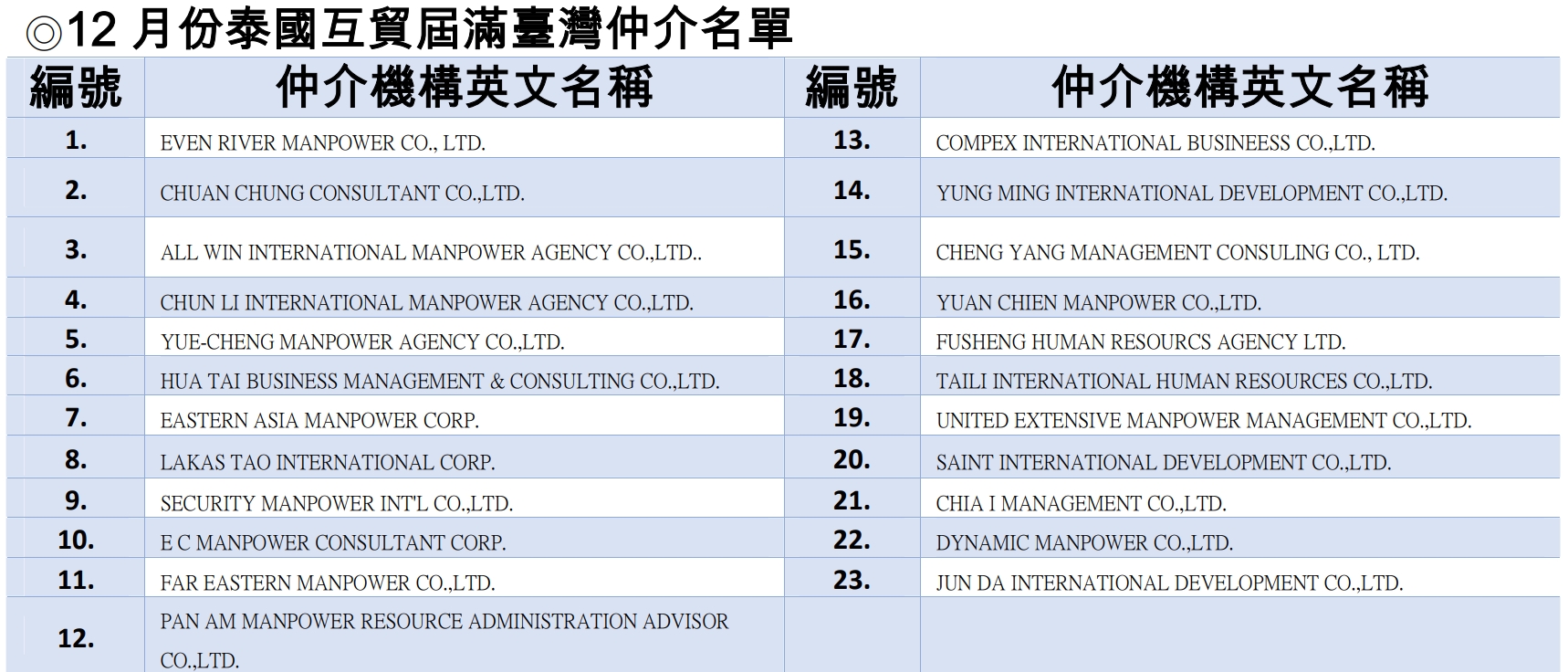 23家臺灣仲介泰國互貿12月將屆滿,服務員比例1:50,英譯應與許可證相符