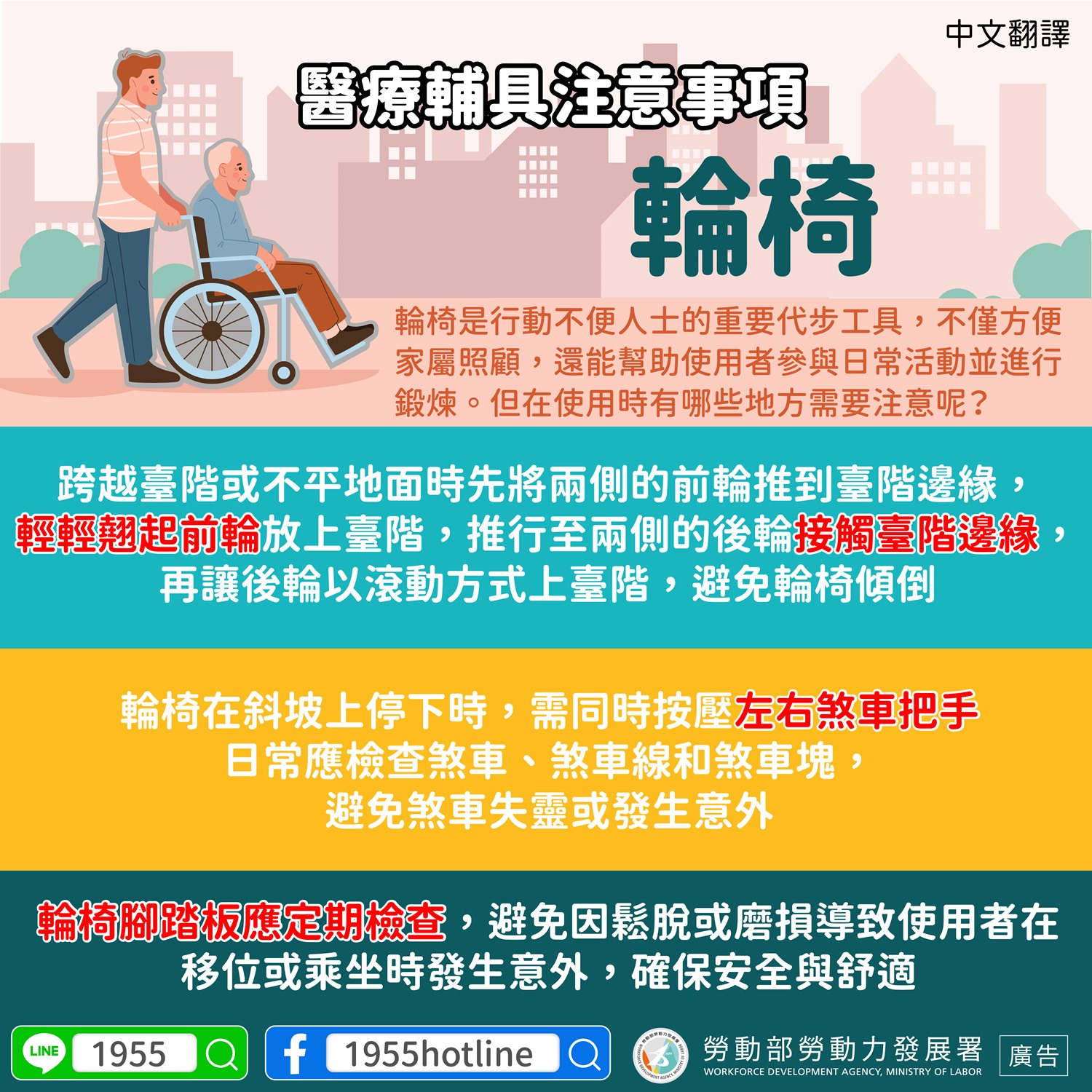 •輪椅腳踏板應定期檢查,避免因鬆脫或磨損導致使用者在移位或乘坐時發生意外,確保安全與舒適