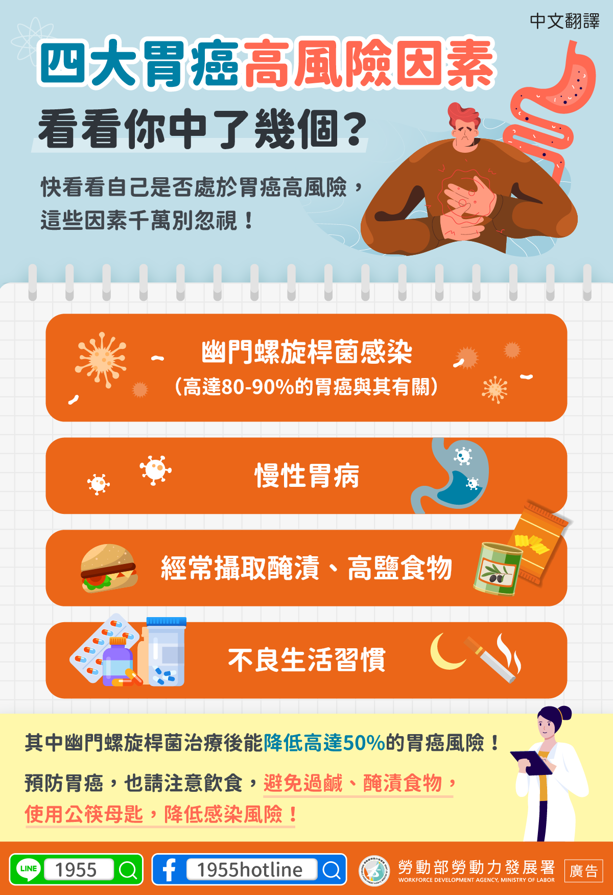 預防胃癌,也請注意飲食,避免過鹹、醃漬食物,使用公筷母匙,降低感染風險!