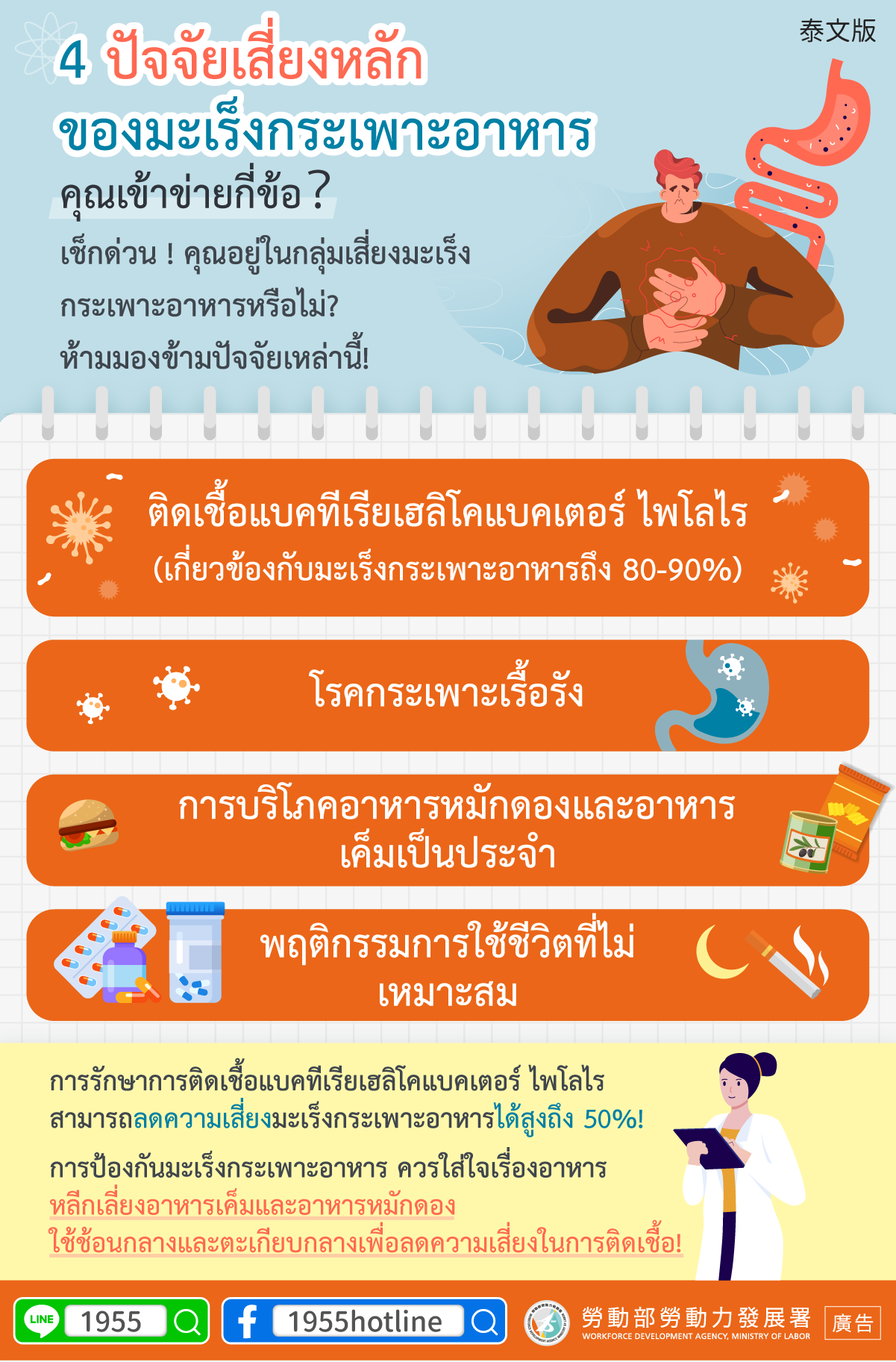 •幽門螺旋桿菌感染(高達80-90%的胃癌與其有關)