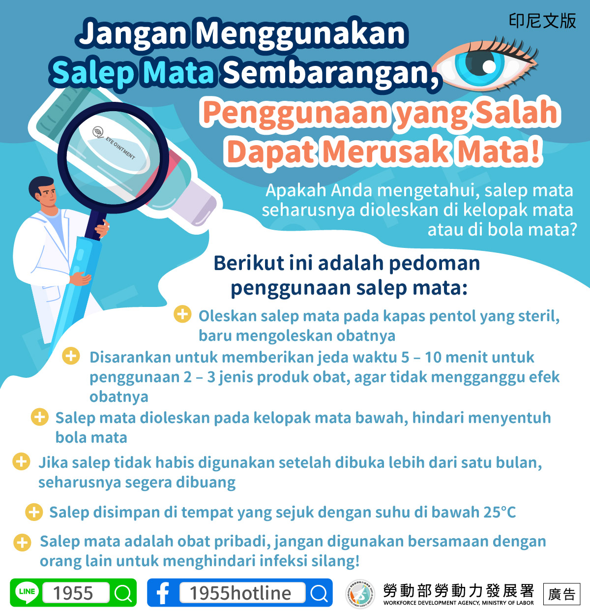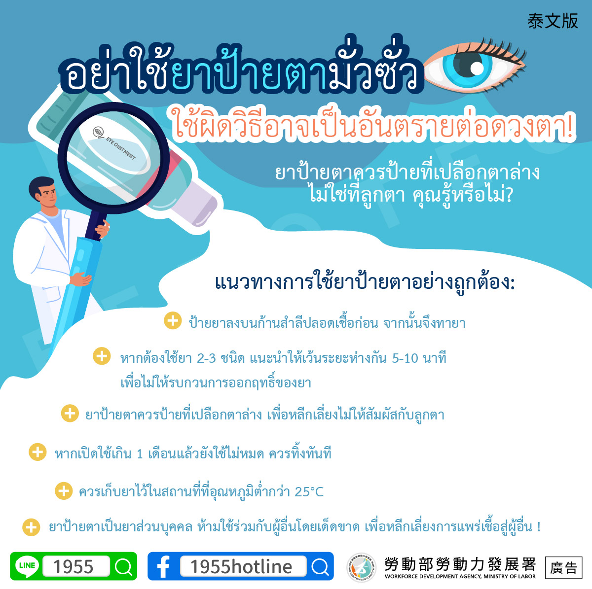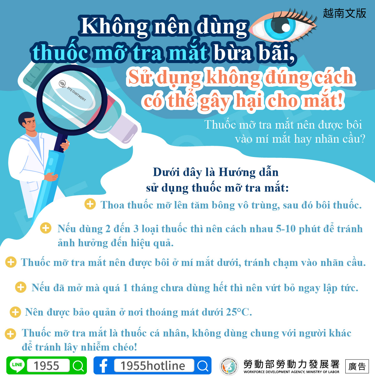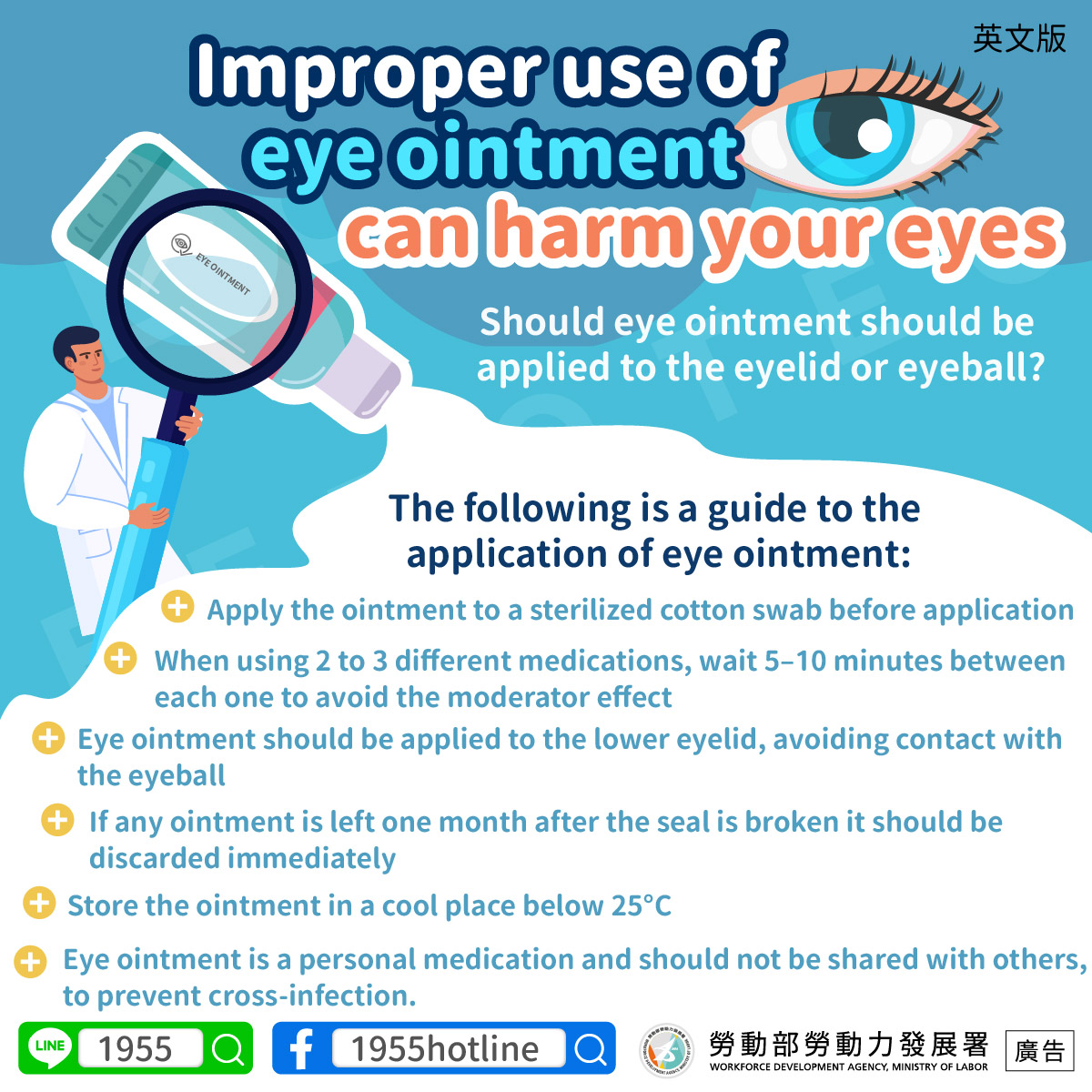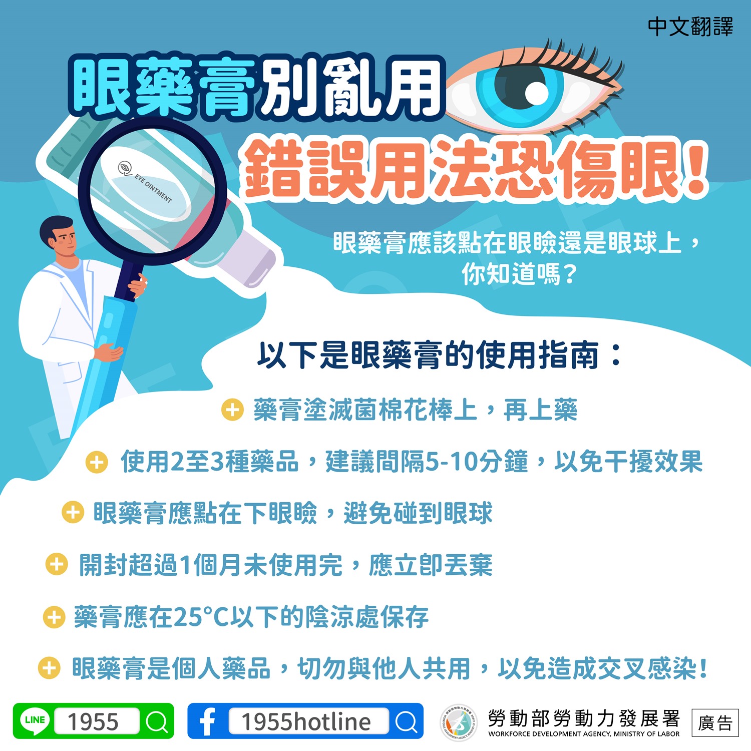 眼藥膏是個人藥品,切勿與他人共用,以免造成交叉感染!