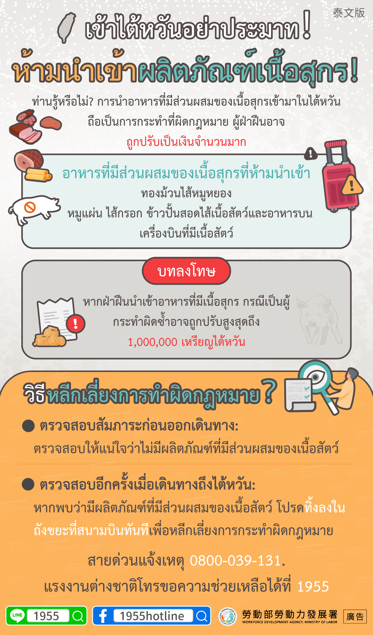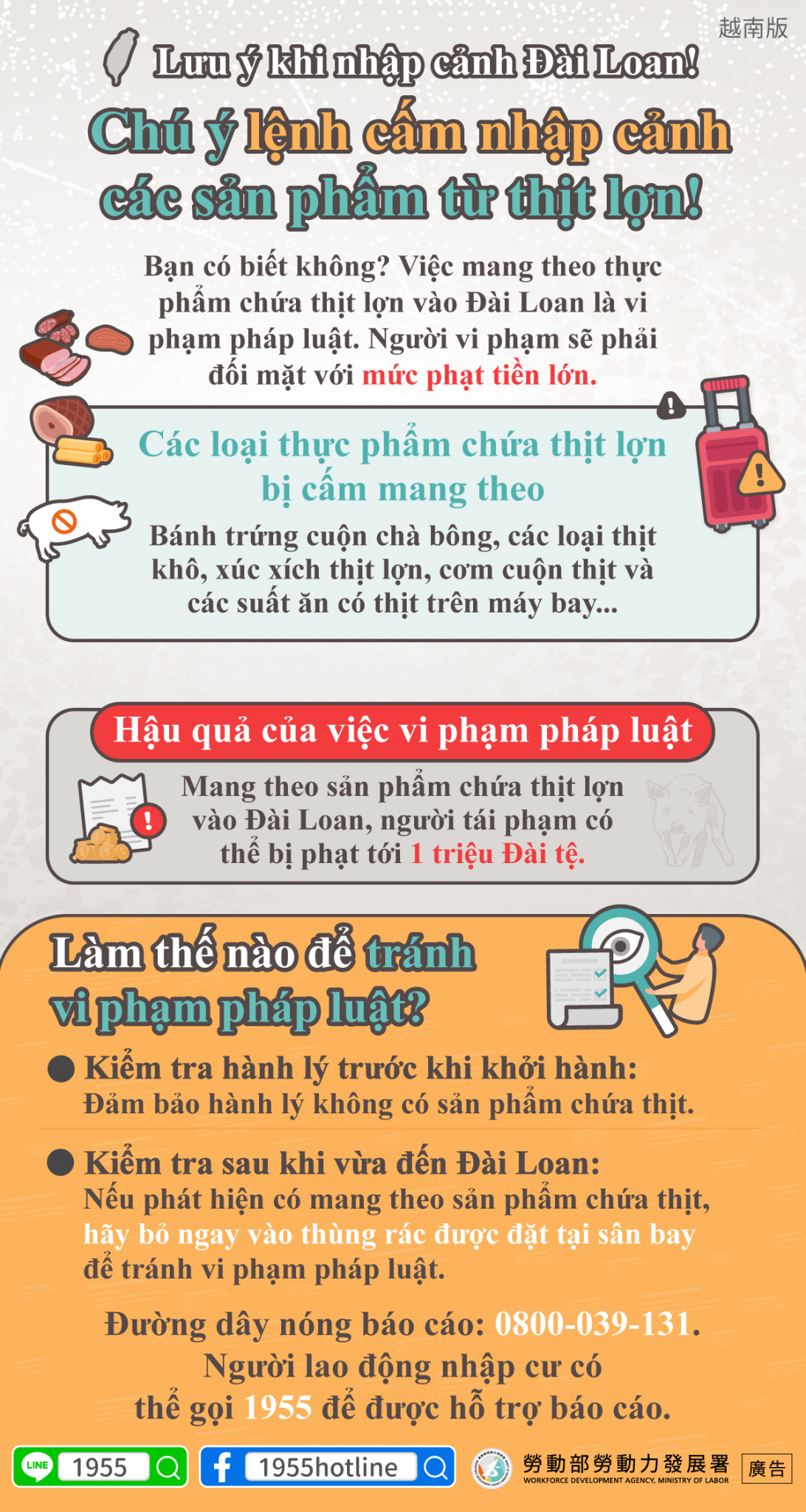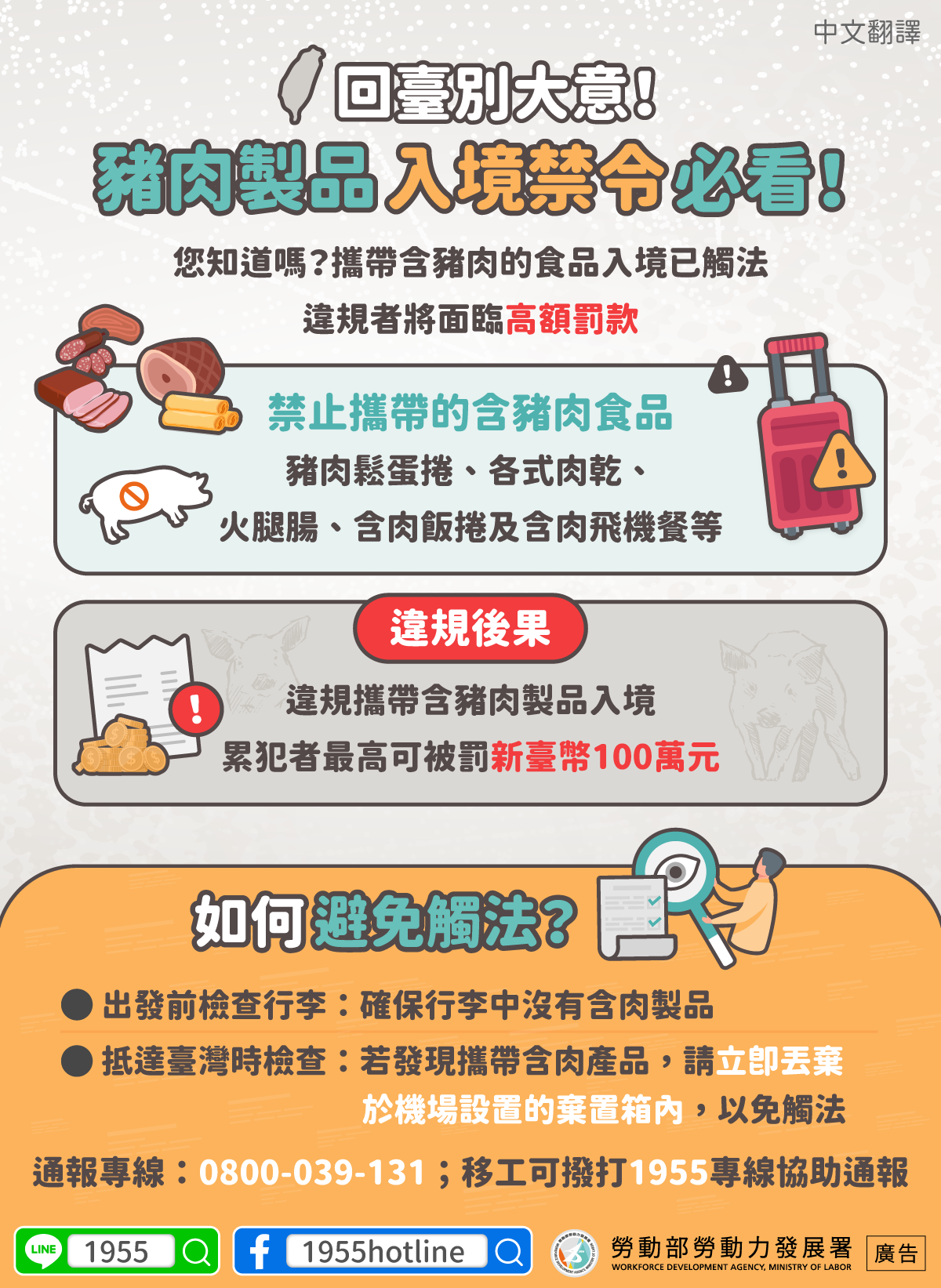 您知道嗎?攜帶含豬肉的食品入境已觸法,違規者將面臨高額罰款