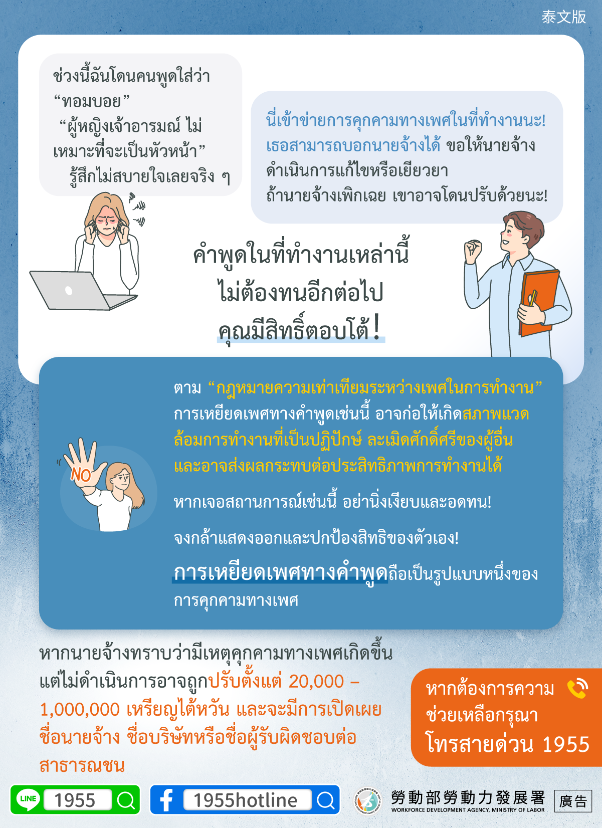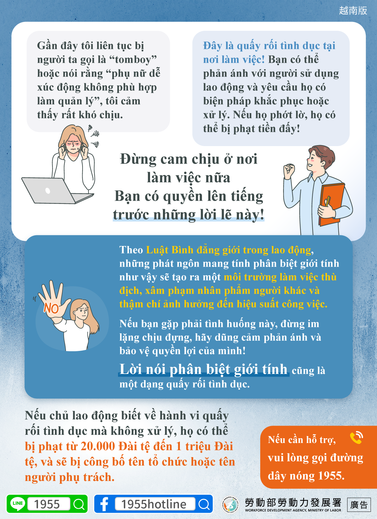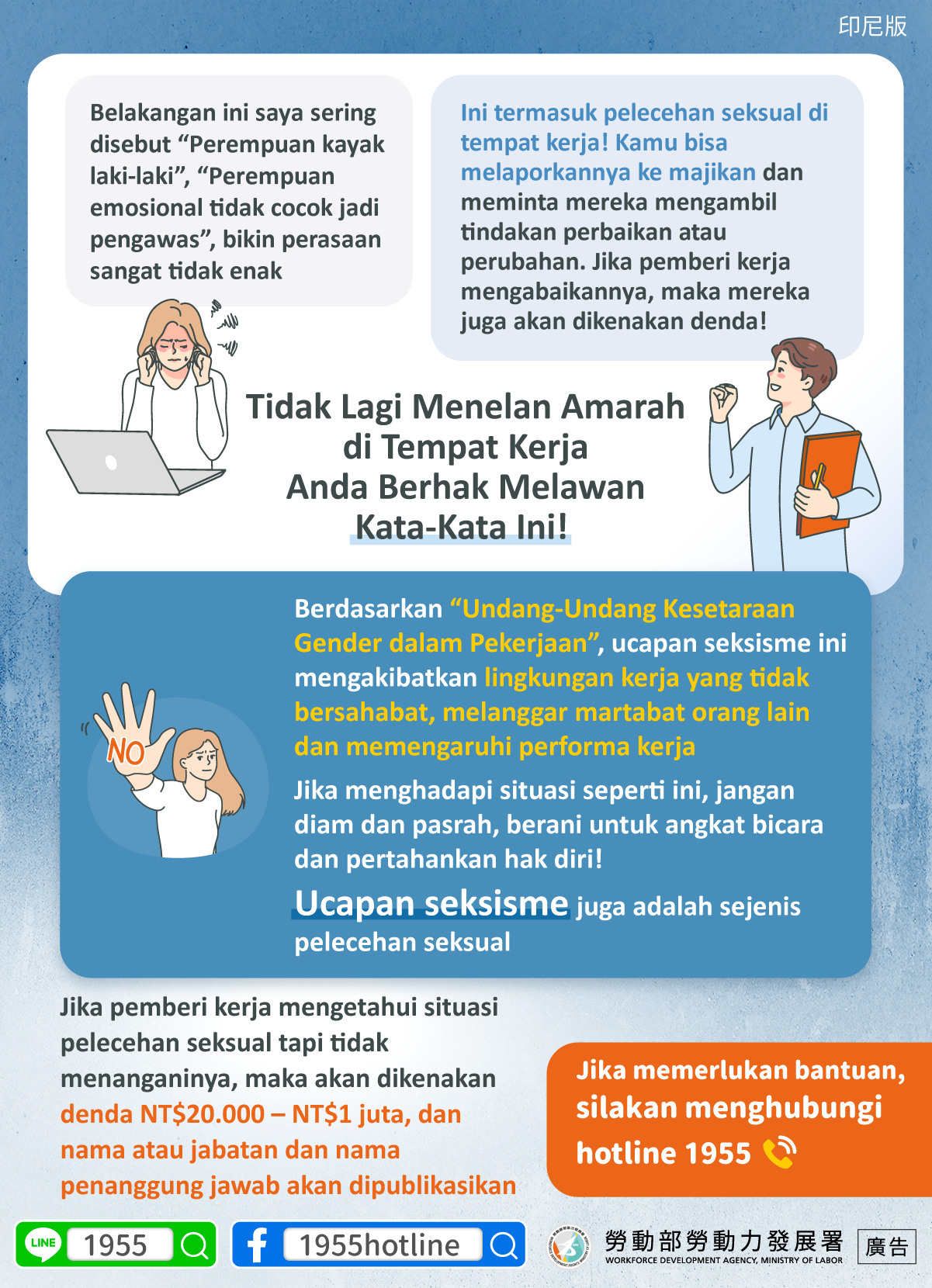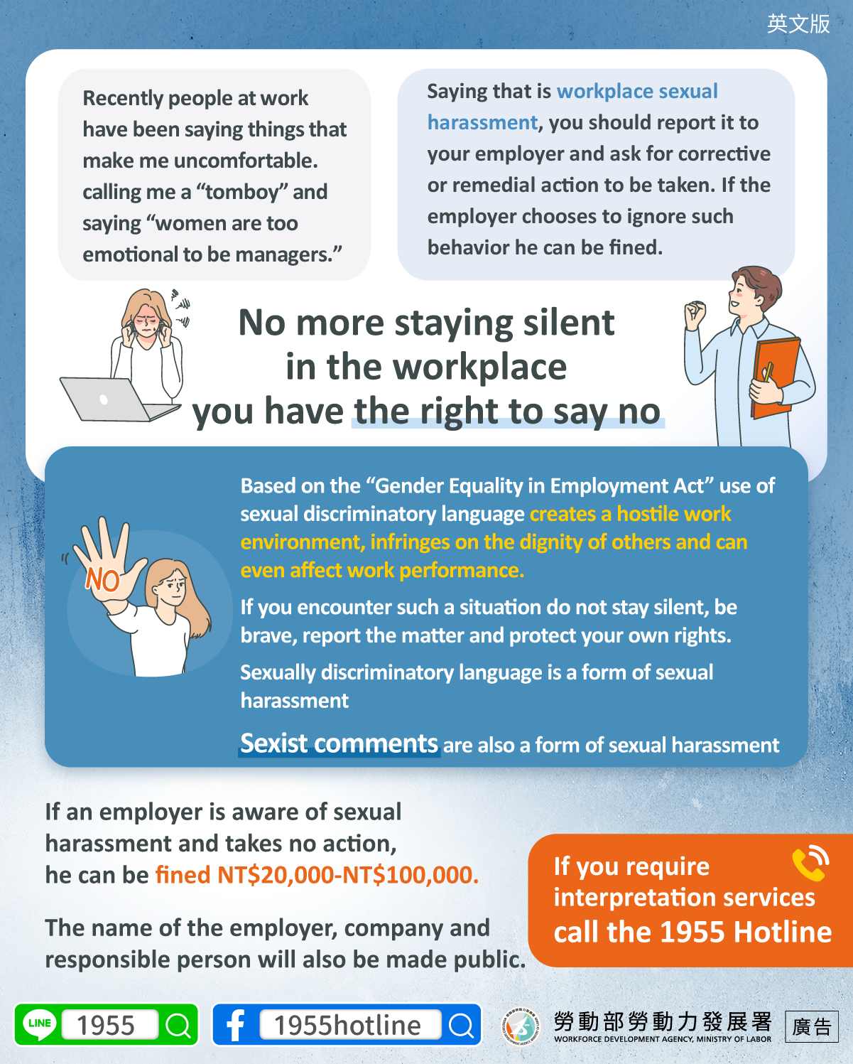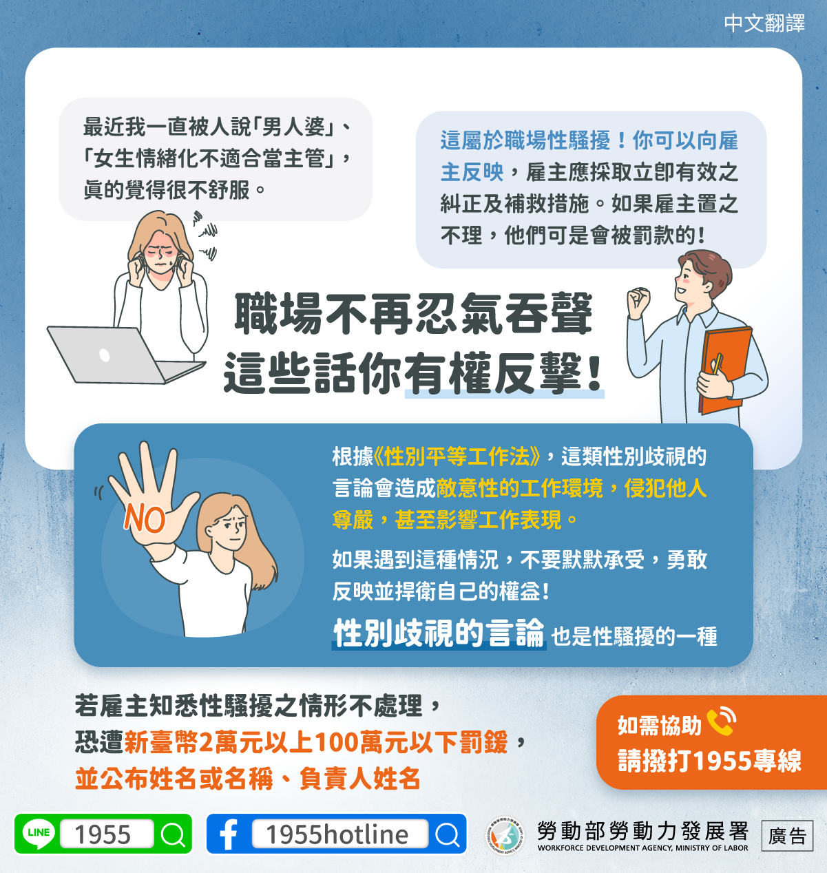 根據《性別平等工作法》,這類性別歧視的言論會造成敵意性的工作環境,侵犯他人尊嚴,甚至影響工作表現。
