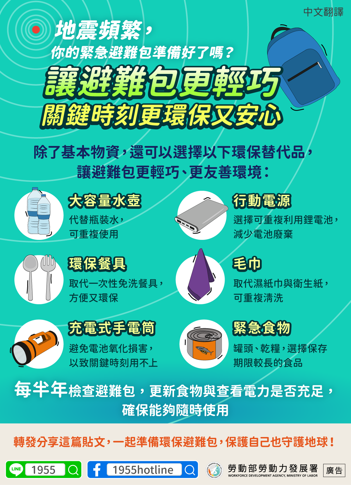 轉發分享這篇貼文,一起準備環保避難包,保護自己也守護地球!