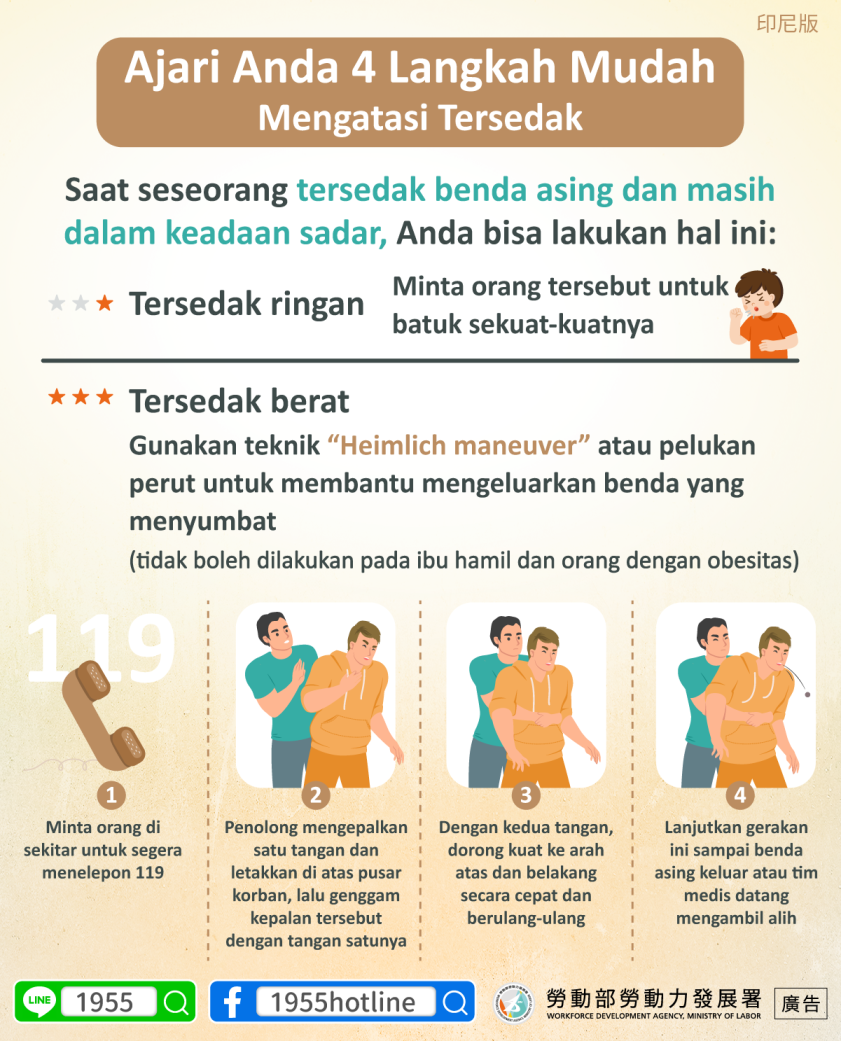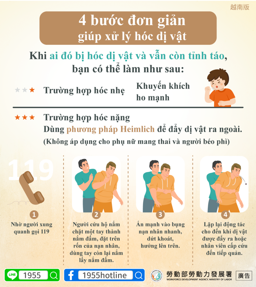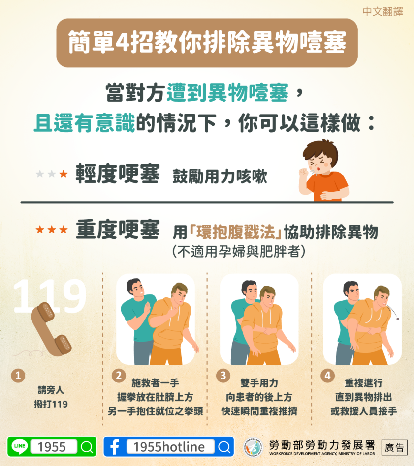 當對方遭到異物噎塞,且還有意識的情況下,你可以這樣做: