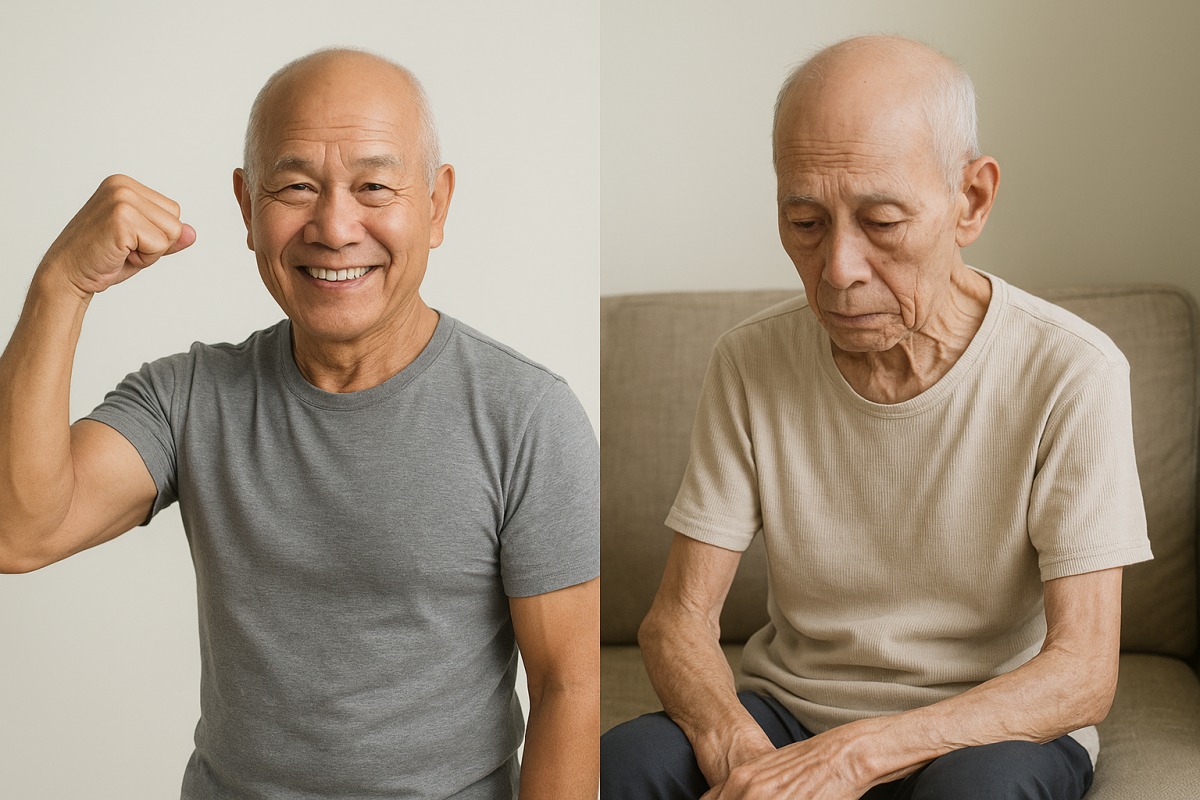 指的是肌肉量減少、肌力變弱、身體活動力下降。