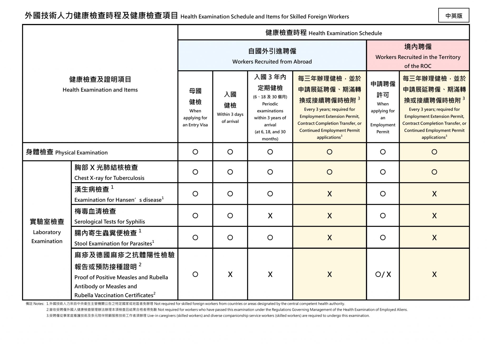 詳情:【衛福部網站-外國技術人力健康檢查相關規定】