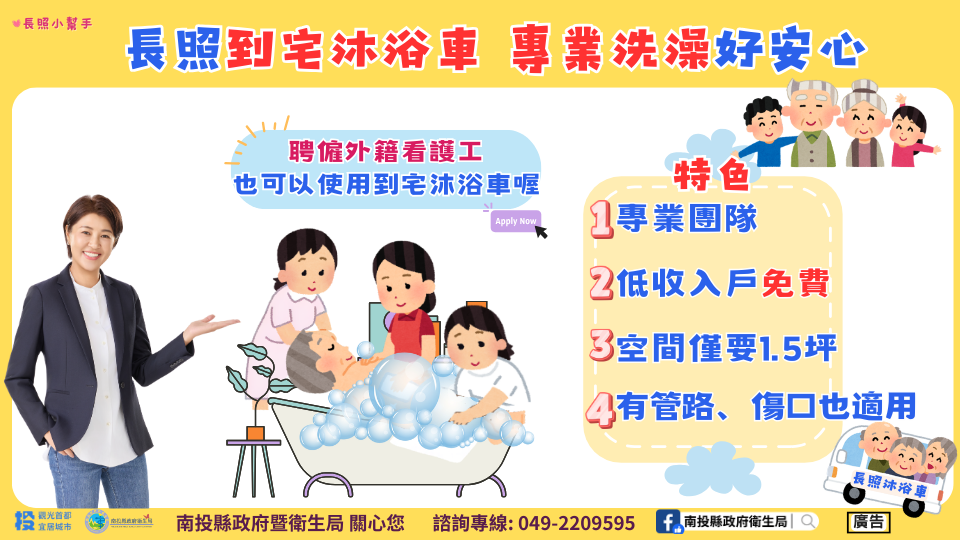 南投縣政府持續推動到宅沐浴車服務,114年1至12月已有208位