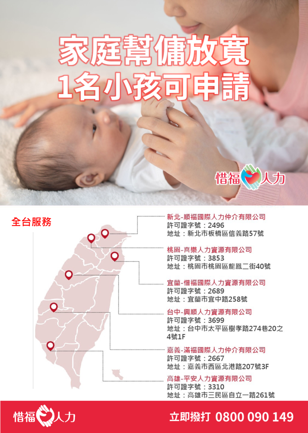 外籍家庭幫傭 外籍幫傭 外勞幫傭 家庭幫傭申請 外籍幫傭新制 外籍幫傭條件 育兒家庭幫傭 雙薪家庭救星 外籍幫傭費用 就業安定費 惜福人力 移工申請