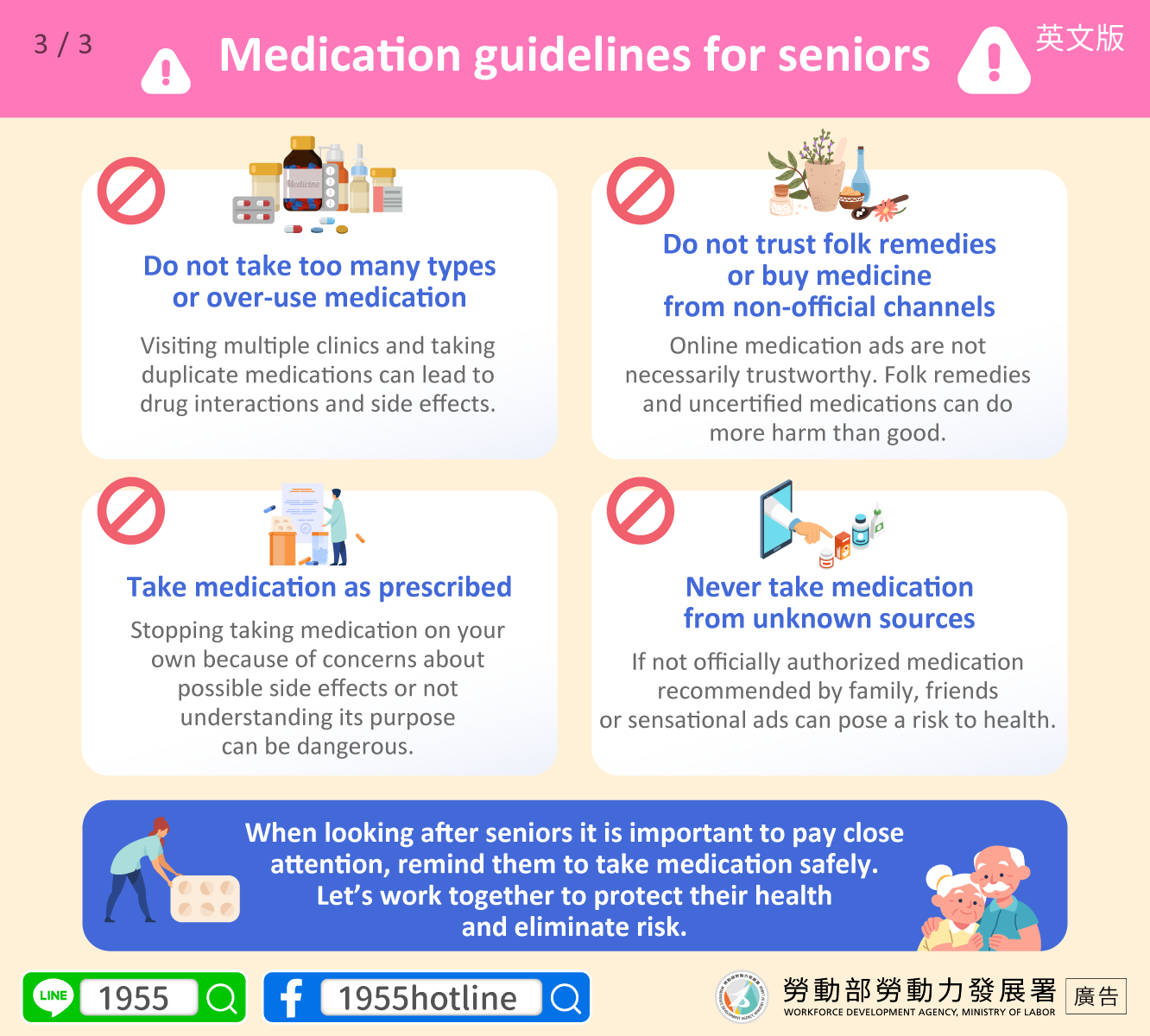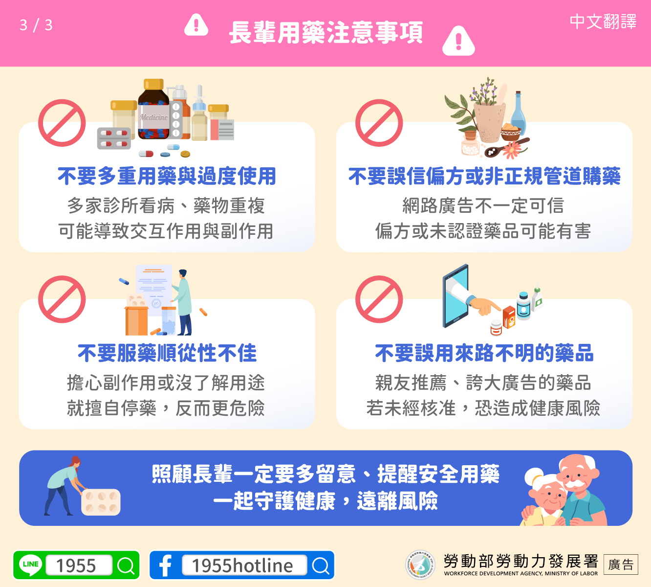 照顧長輩一定要多留意、提醒安全用藥一