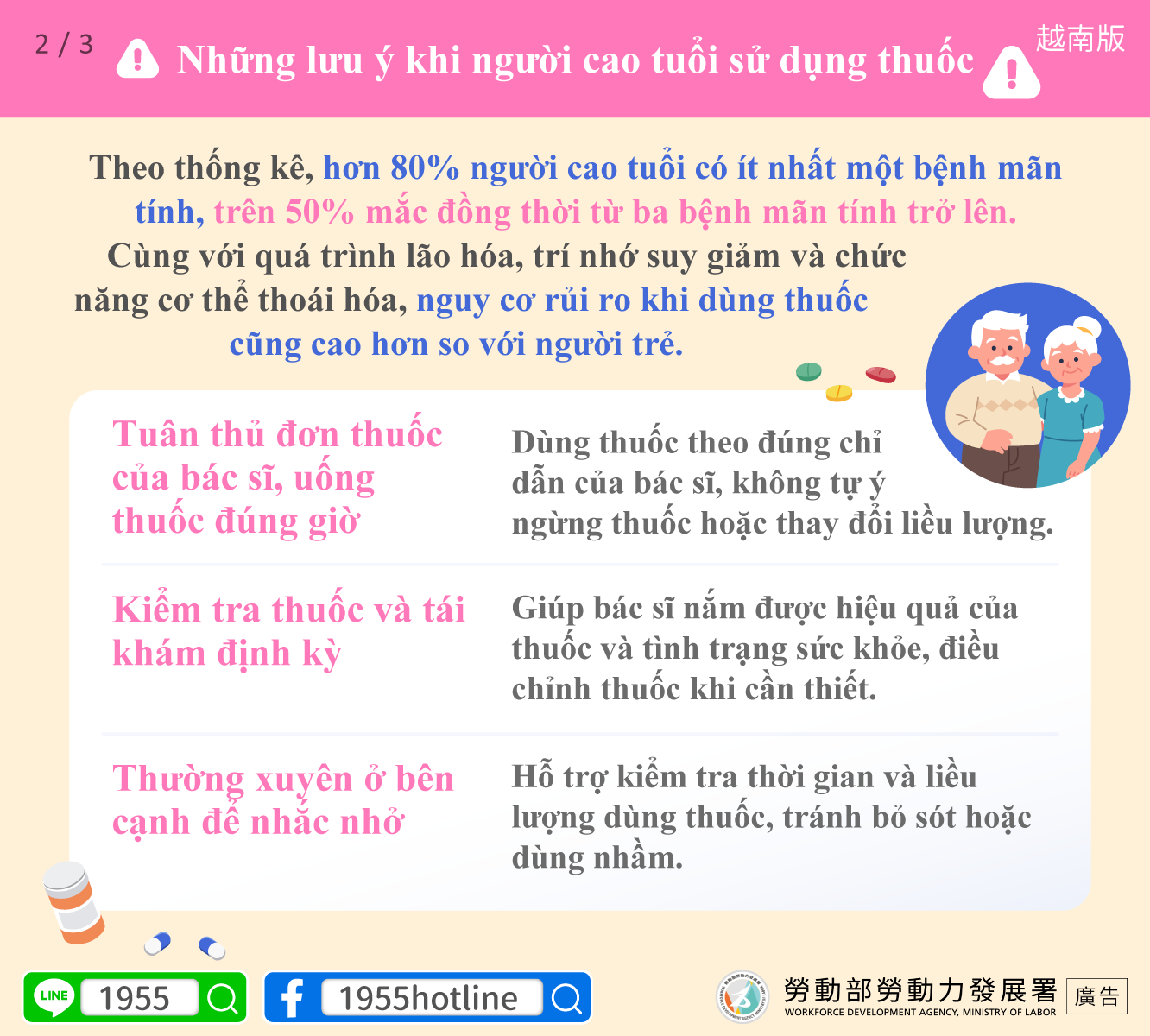 Chăm sóc người cao tuổi cần quan tâm và nhắc nhở việc dùng thuốc an toàn, cùng nhau bảo vệ sức khỏe và tránh xa các rủi ro.