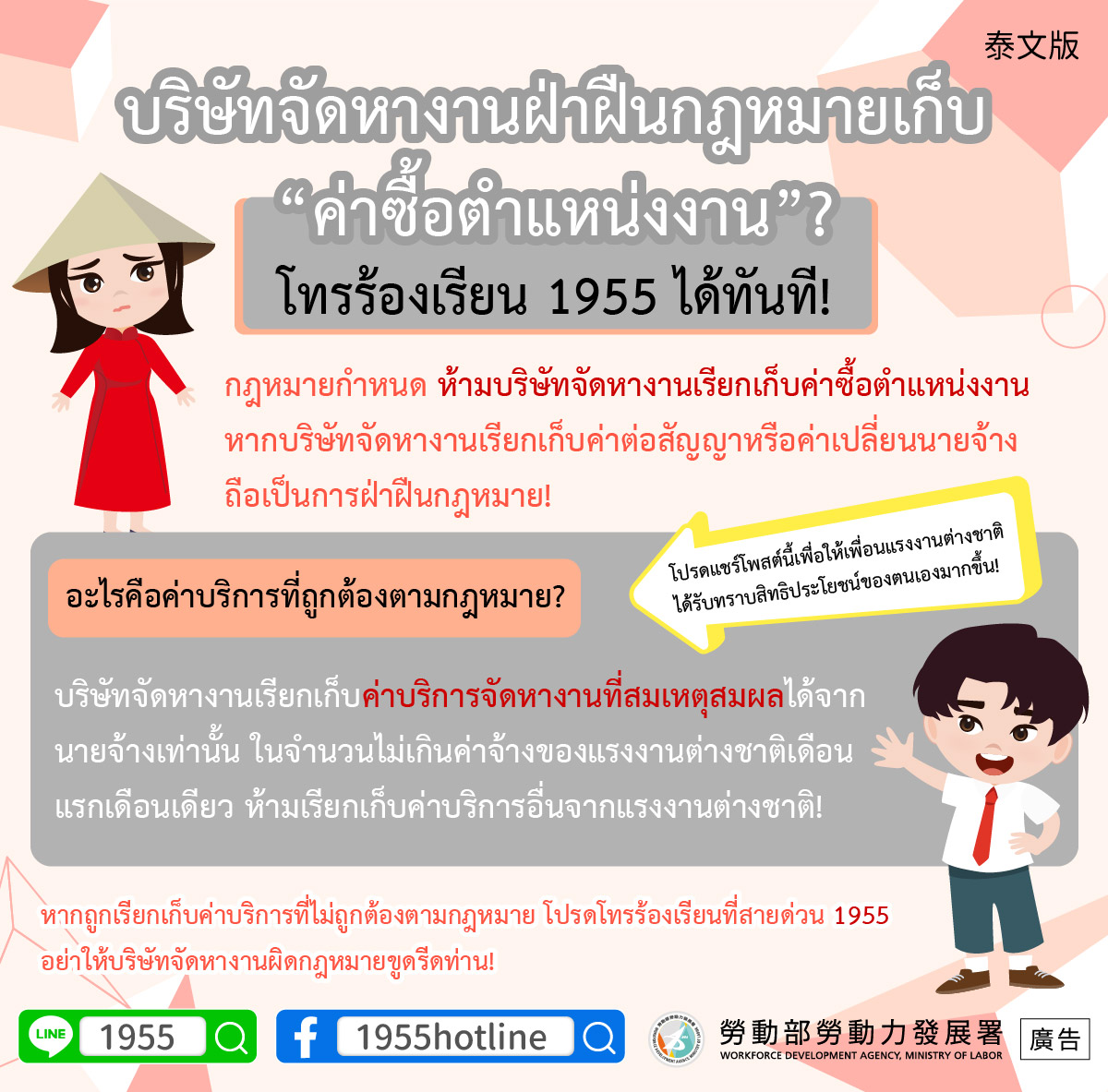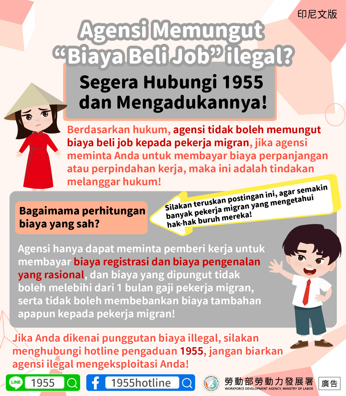 根據法律,仲介不得向移工收取買工費,如果仲介要求你付費續聘或轉換工作,屬於違法行為!