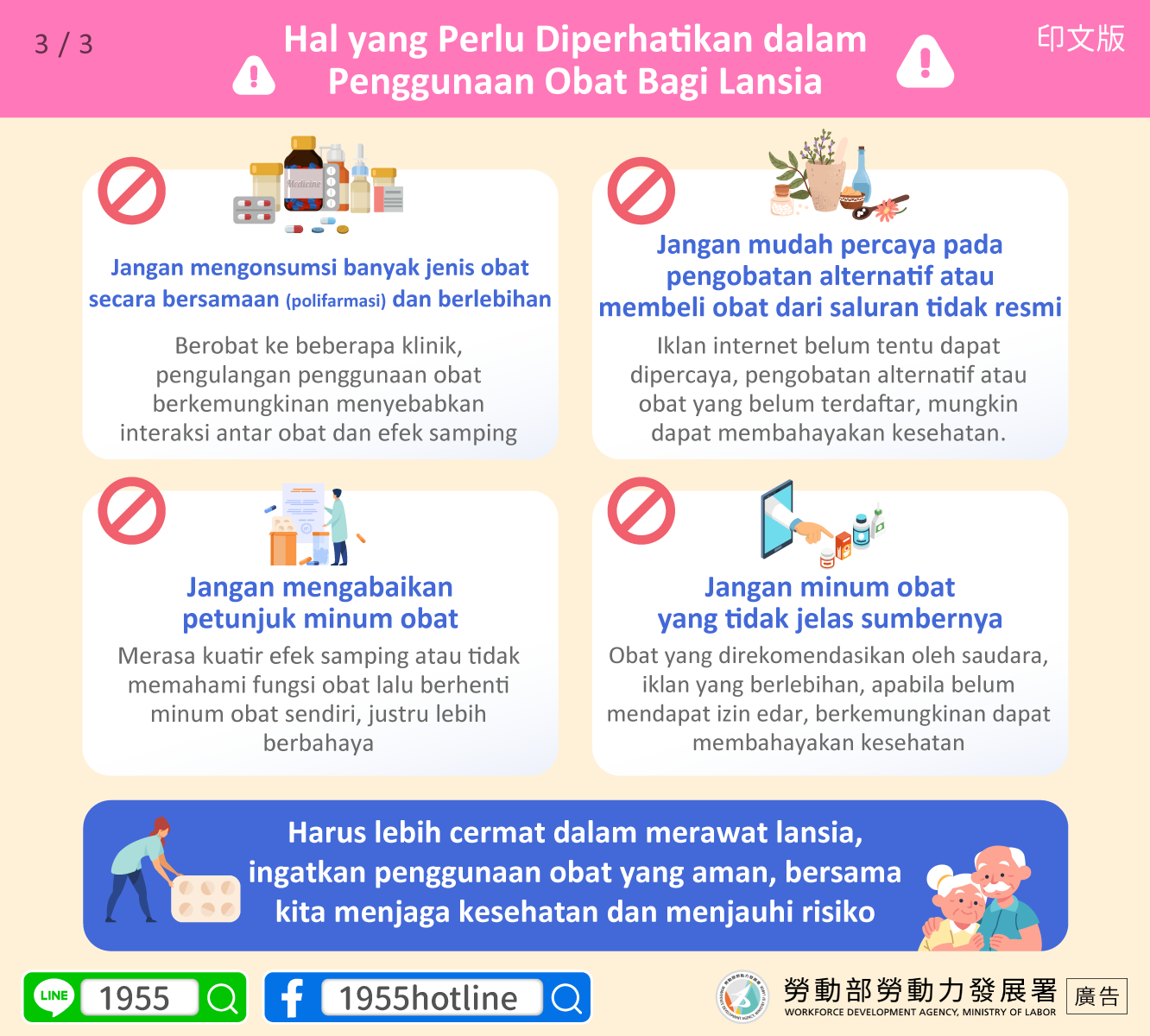 Harus lebih cermat dalam merawat lansia, ingatkan penggunaan obat yang aman, bersama kita menjaga kesehatan dan menjauhi risiko