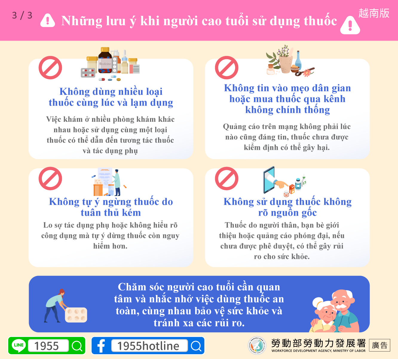 Chăm sóc người cao tuổi cần quan tâm và nhắc nhở việc dùng thuốc an toàn, cùng nhau bảo vệ sức khỏe và tránh xa các rủi ro.